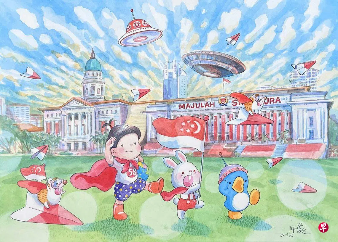 经老同学一提,才恍然忆起原来之前教学或办工作坊时,一再引用的“大猫来了”小插画,是自己中学上美术课时的小创意。