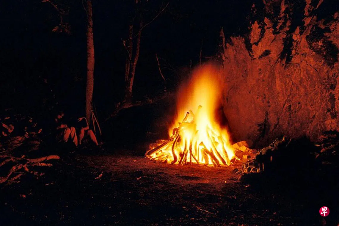 夜幕已低垂,他们还是无法赶到村落,大伙只得在山中过夜。山上气温很低,寒风刺骨,他们生起火堆取暖,并挨近火堆睡觉。戏班子里,有一个人生病,禁不住入夜后的寒冷,便从道具箱中随手拿了一件戏服穿上,坐在火堆边取暖,而这件戏服恰巧是扮罗刹鬼穿的。夜半,有人从梦中醒来,睡眼惺忪间看到火堆旁边坐着一个罗刹鬼,吓得大呼大叫,拔腿就跑。这人的仓皇,惊动了大家,整个戏班子都盲目地跟着逃跑。