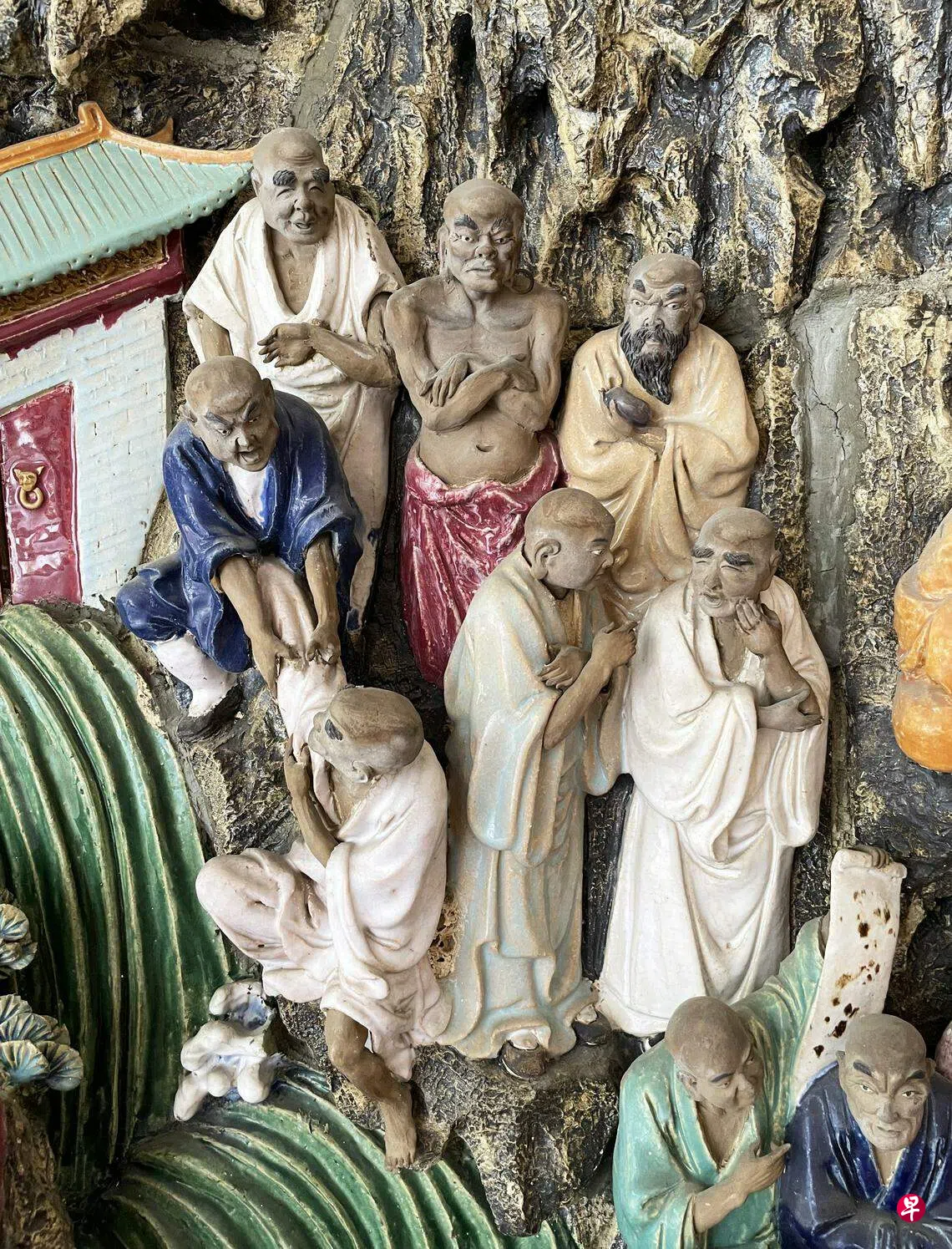 上周六在天福宫现场授课后赶往碧山亭,希望在随团参访前了解下这里的环境。穿过碧山市镇大片的组屋群中,拐入一处僻静的道路,远远看见碧山亭的绿瓦大牌坊和明黄色围墙,下车之后被牌坊两侧的巨幅龙凤陶瓷壁饰吸引,步入大门环顾四周,整体环境比预想中的开阔,主体建筑包括公所、碧山庙、福德祠、灵塔,间中布置先贤纪念碑和亭桥水池植物。