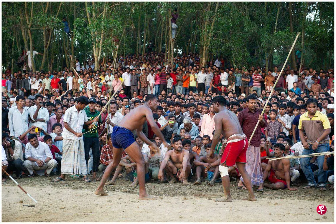 我们前往孟加拉吉大港市附近的一个村庄,为了要观看孟加拉传统的摔跤比赛。比赛地点是一个占地几个足球场大小的场地,当地的群众就围绕着中间的一片沙地观看比赛。在日落之前的黄昏时分,村民就聚集在这里等待比赛开始。