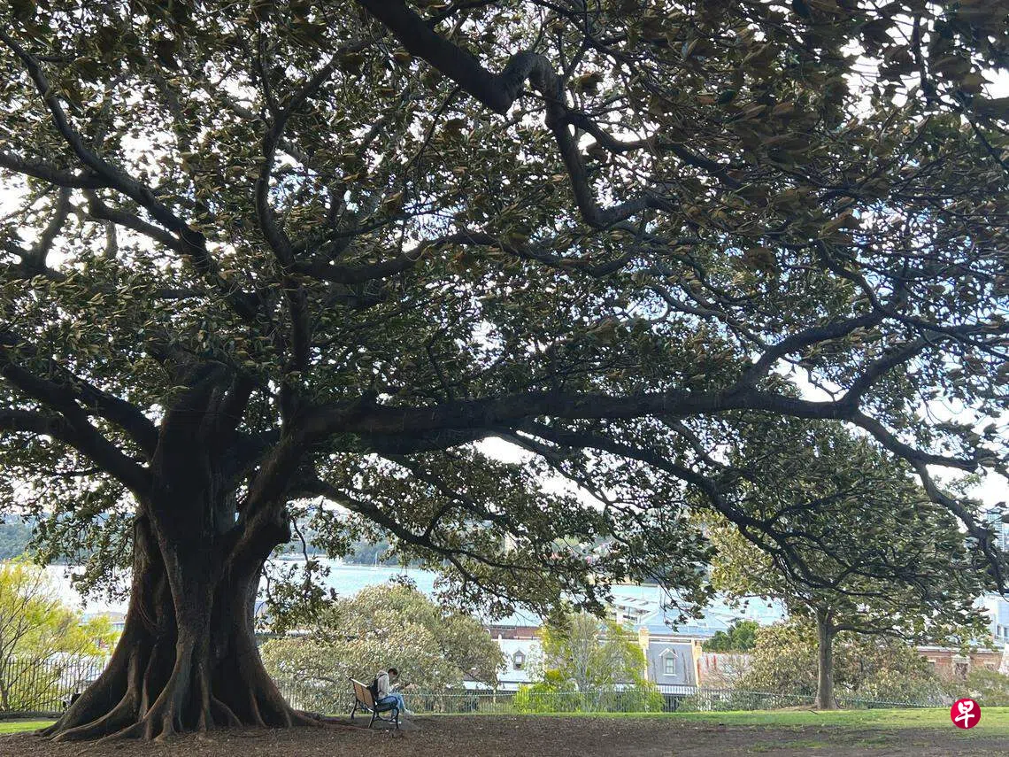 有风经过,树叶竟能发出汹涌海涛般的声音。悉尼公园里常见的大叶榕树,大多种植于20世纪初,已经长得风风火火。看过一本博物的书,记住一个句子:动物占据空间,而植物记录时间。大叶榕树粗壮的板根、树冠上茂密的枝叶都结满了时间。那巨树,像是城市里一件随风演奏的乐器,随性地为我们演奏一曲,只能放慢脚步听树。