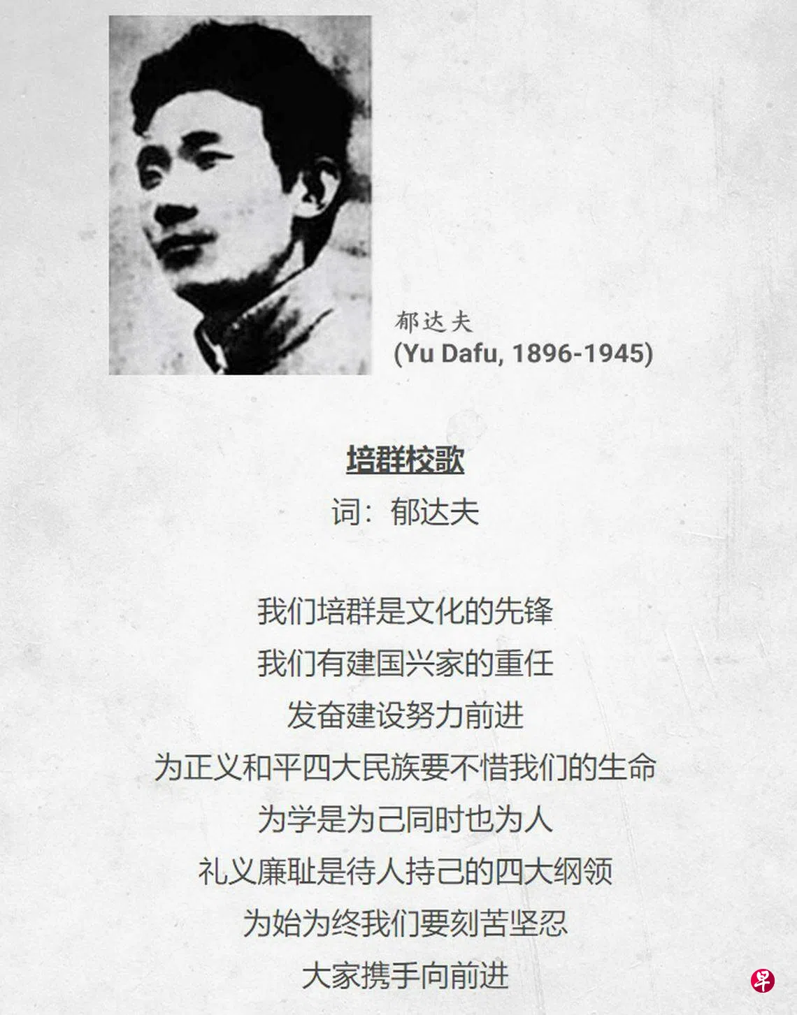 当年华校校歌的歌词,文绉绉者不在少数。那是个文言文尚可立足的年代,校歌里装着四维八德、诸子经书的隽语箴言,畅述理想,散发着二三十年代浓郁的民国风。譬如崇正校歌:“礼义廉耻,四维是张,吾侪慎勿忘”;中正中学“曰吾中正,至大至刚”,皆典型范例。