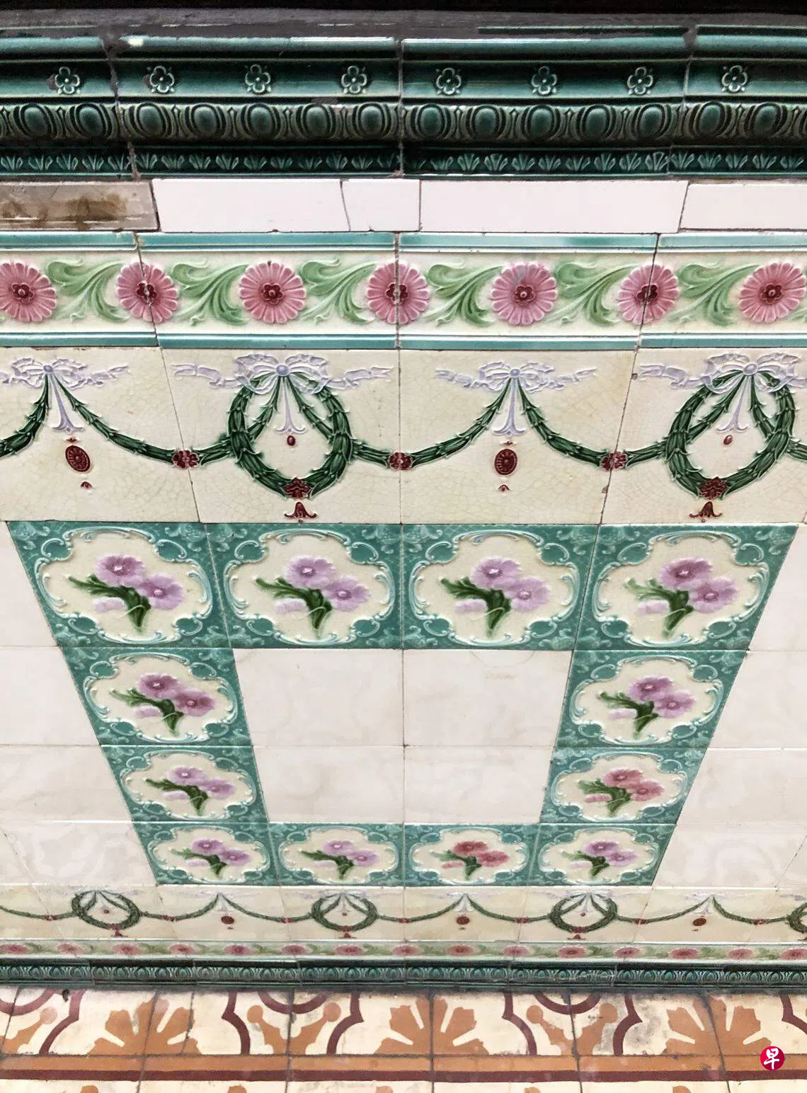 有关花砖的历史渊源与传播路径,学界有各种论述,从西班牙的马约里卡式到英国的维多利亚式,伴随海洋贸易与殖民扩张,这一建筑材料在20世纪初的东南亚和东亚风行一时,也被用在南洋和华南的华侨华人建筑中,体现他们的海外生活经验与文化趣味。新加坡曾是英国海峡殖民地,建筑文化上受到相应的影响,因贸易之便可以获得对应的建筑材料。19世纪末马来亚华人头家宅邸中,英国格拉斯哥的铸铁构件与维多利亚式花砖是昂贵时髦的建筑材料,成为富裕阶层社会地位的象征,缤纷艳丽的花砖与热带蓬勃热烈的气息相吻合,成就南洋生活的华丽梦想。