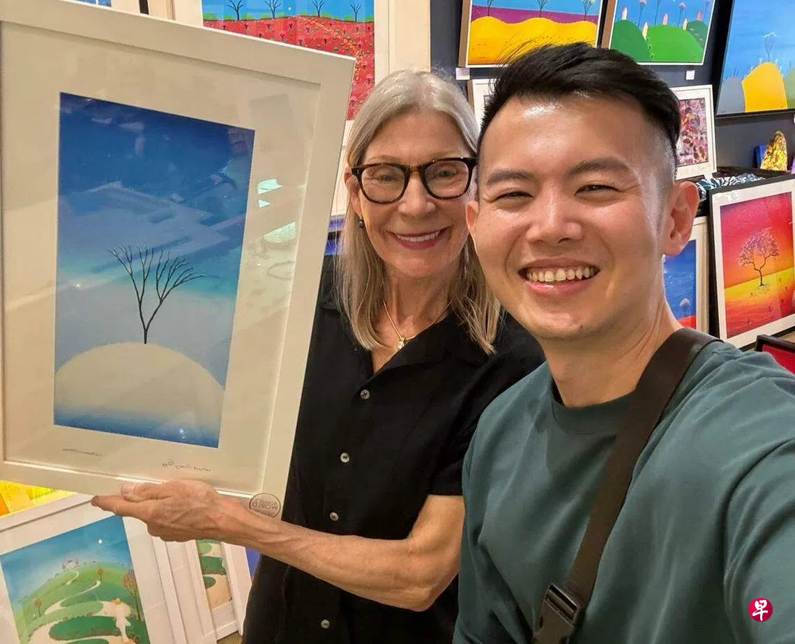 张承尧:初雪订户赠阅文章张承尧(右)被邦妮的这幅《初雪》深深吸引。 (作者提供)一棵立在小山丘,枝叶凋零的枯木,正昂然迎接寒冬的第一场雪。 这幅名为《初雪》的画,出自一位来自美国、定居澳大利亚珀斯的女画家邦妮(Bonnie Atlan)。在阳光明媚的西澳老镇一间画室里,我第一眼看到就驻足良久;纯净又带点童趣的画风,迎接初雪的枯枝散发着一种落幕的惆怅和新生的悸动。人生一段段际遇,有始必有终。曲终人散总令人欲语还休,即使新的人已在身旁,新的旅程即将开始,我们总带着来不及说完的故事,一直走下去。 U游频率张承尧上一篇卢桂霞:酱油情下一篇周雁冰:当大叔遇上当代艺术购买此文章