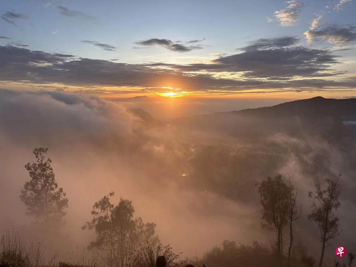一身保暖运动装的女店家莉莉丝为两个黑木炭桶点火。山顶温度降至摄氏14度,我们坐在小塑料凳上朝炭火取暖。近半夜时,导游M来泗水酒店与我们会合,坐私车出发,行驶两个小时后,转换吉普车上山一小时抵达。此时手里有杯黑咖啡喝就感到暖意,尽管它是即冲咖啡,甜得不得了。倒是刚炸好的油炸天贝(tempe goreng)与香蕉很香脆。M买来路边木炭烘烤的玉蜀黍串让我们尝尝。