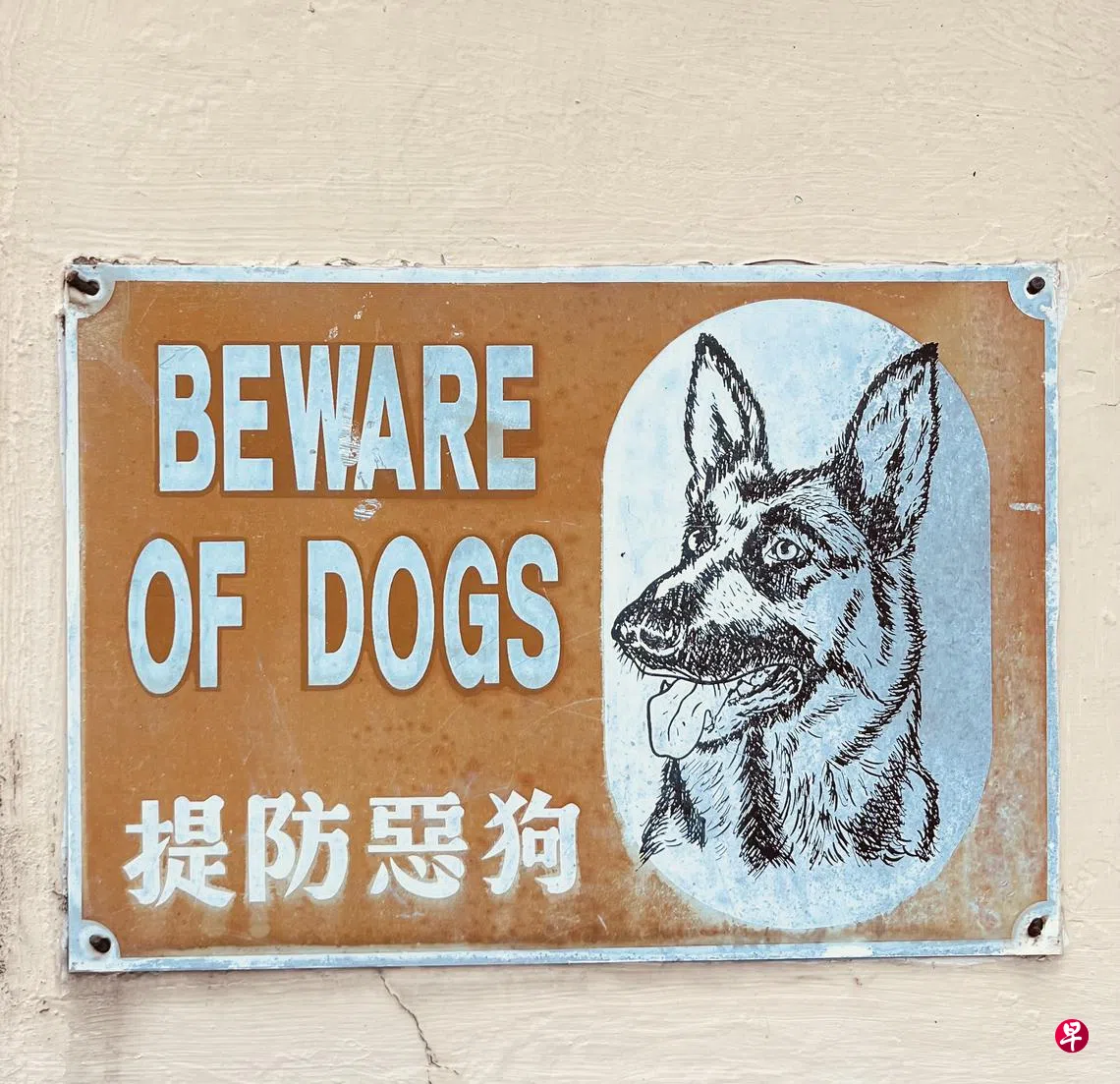 一甲子前,我从乡村搭车上学,沿途经过私人有地住宅,发现不少人家的门墙上,挂着“内有恶犬”的牌子,还附着狼狗凶神恶煞的模样,这是善意的提醒,也警告歹徒别闹着玩。至于屋内是否真有恶犬,就不得而知了。那时乡下的亚答屋或锌板屋,门虽设而常开,似乎家家都养狗看门,独缺那块“内有恶犬”警示牌,这是城乡差异。