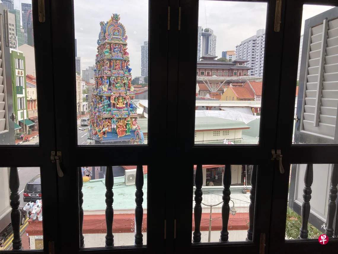 “未完成”书店的书架不多,走简约路线,选书以文学和艺术类为主。书店还摆放沙发供顾客歇息,仿佛置身店主的私人书房。书店面积约一间五方式组屋客厅般大,相当宽敞。我也借此一览二楼的建筑格局,长形落地百叶窗是牛车水南洋老屋的特色,阳光晒进来,暖暖的。木栏杆则含有欧式柱子元素,混搭式建筑风格突显岛国的多元文化。