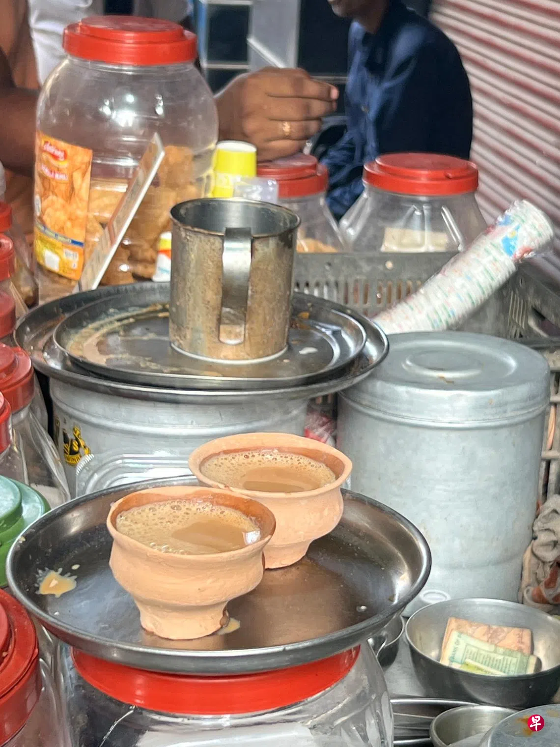 真正的印度,在街头展露和蔓延,困顿而卑微的生活一览无遗。加尔各答的街头小吃蓬勃,用来满足这座城市无限膨胀的食欲。街头尽是小吃,人们买了食物,站在路边大快朵颐,吃完后再来一杯印度奶茶,简简单单的一餐,也能丰盛美好。我和当地人一起坐在街边的小板凳,喝杯浓香滚烫的奶茶。当地人煮茶的方式和煮咖喱无异,用一铝制大锅,加入鲜奶、茶叶和香料等,煮滚沸腾后再倒入大水壶里。茶杯是一次性的小陶杯,来自大地出自手作,喝完后砸碎即可,据说一个才1卢比(约0.02新元)。我不舍得丢弃,每次印度之行,都会带一两个回家作为纪念。