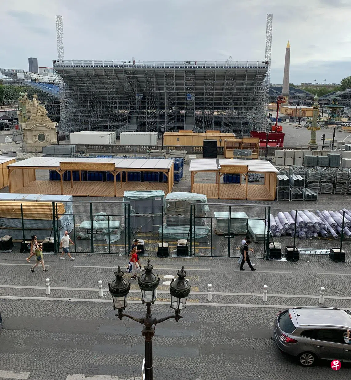 前天去位于协和广场的海军大楼看展览,惊见关闭整个月的交通枢纽原来已经成功变身露天运动场,中央两座喷水池隐没在工程棚架后,昔日路易十六和他皇后娘娘魂归离恨天的伤心地,即将迎来崭新繁华,暗黑历史一扫而空。只是7月14日国庆阅兵怎么办?总统每年由凯旋门起步,穿越香榭丽舍大道宣示海陆空实力,向来以这里作终点,今年不得不背弃传统,难道不怕影响风水?