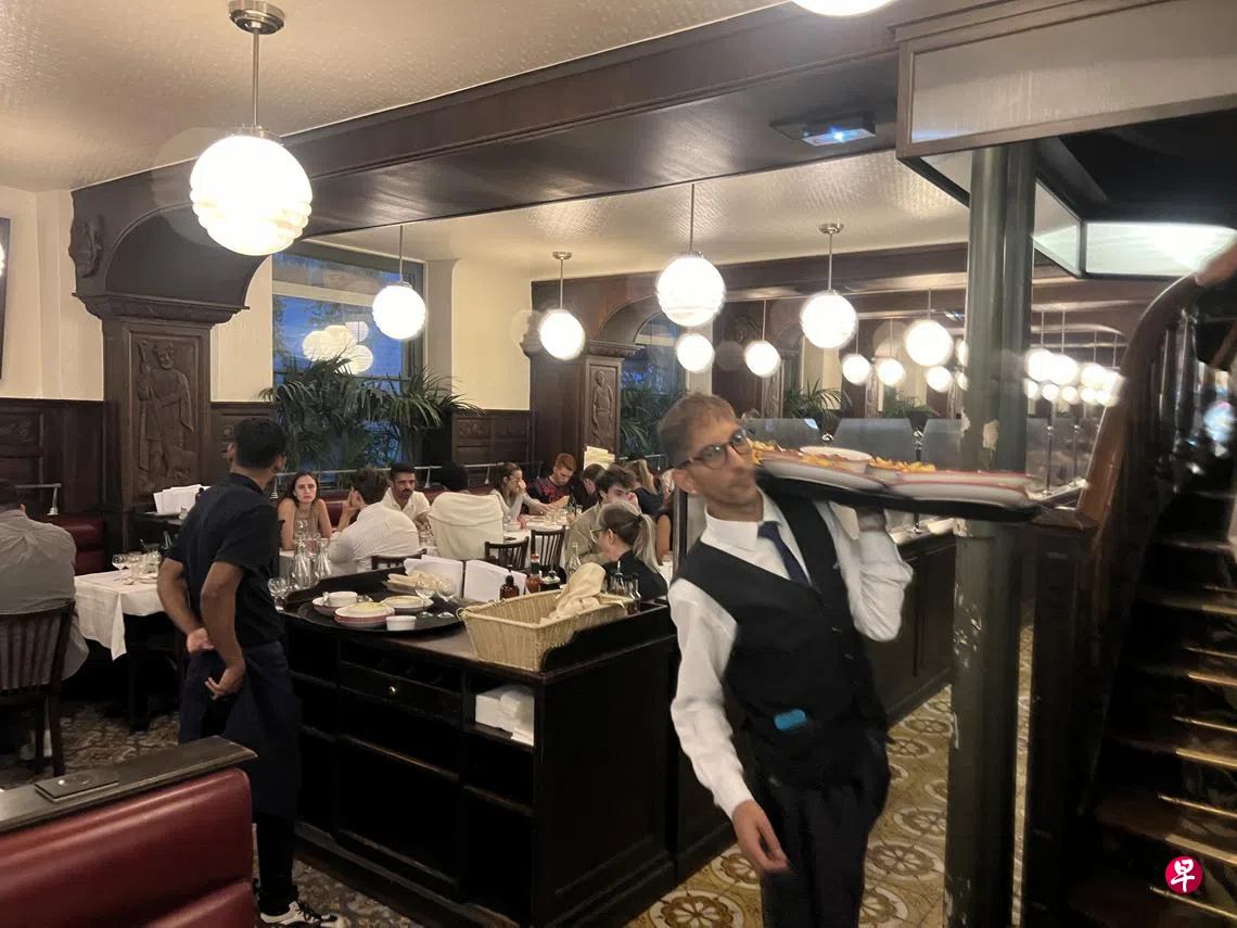 在小酒馆,喝了几杯夏日的鸡尾酒Spritz后,巴黎的朋友问,晚餐想吃什么?来到巴黎自然得品尝地道法餐,感受巴黎风情,毕竟巴黎是拥有全球最多米其林餐馆的城市之一。朋友建议说如果你们不怕排队,那么就去Bouillon吧。我们抵达共和广场附近的bouillon,门口大排长龙,但朋友说不用担心,估计只需要20分钟,我们就能入座。