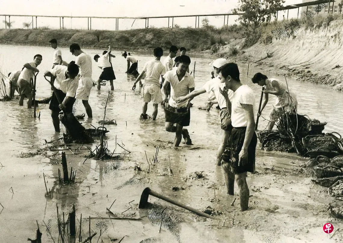 南大湖易名南洋湖,现代化了,视觉上它已不是一幅凹地——从前它与一列篮球场同个高度,坐落在山谷里。从球场侧面拾级而上,是绿色巴士3A线的终点站,一旁是永祺餐厅。球场正面,陡斜的草坡上嵌着“锻炼身体,献身祖国”八个白色大字。球场末端不远处,就是南大湖。而今球场没了,斗大的字也已移除。那片地已大面积整改,耄耋之年的老南大,或得靠近处姿颜依旧的华裔馆佐助,方能确定眼前的湖,就是一甲子前的一泓春水。它华丽变身为湿地公园,曲桥架于水上,周边栽种各式各样的水生植物,并配以喷泉和水榭平台。