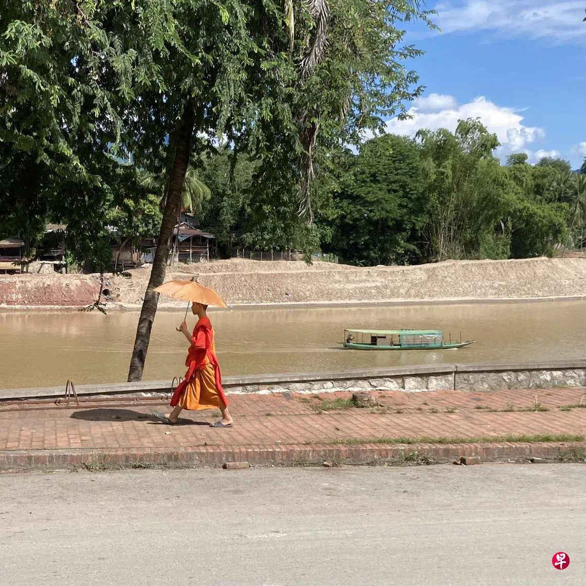 确实有雨,但都不大,半夜三更悄悄地下,深怕吵醒沉睡中的小城似的,清晨六点之前出门去看僧侣化缘,发现街上湿漉漉的,这才知道昨夜小雨来过。