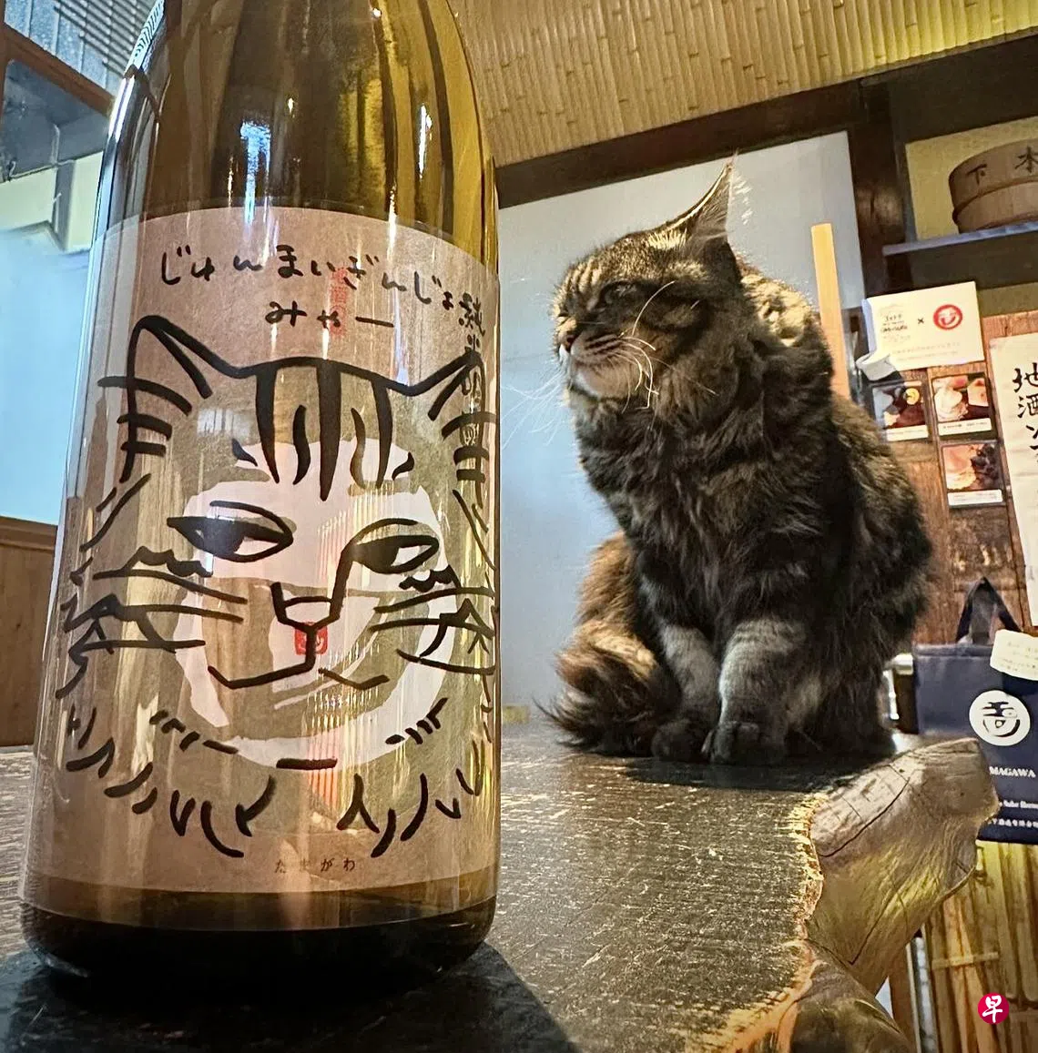 妙弥(Myaa)是一只老猫,虽然品种已无从证实,但它看起来像缅因猫。第一次见到它是在2023年春节年初六,日本京都京丹后市木下酿酒厂(The Kinoshita Brewery)贩卖部。当时妙弥就立坐在实木柜台上,脸上长着白长须,全身覆盖着黑灰棕色纹理长毛,尾毛尤其长和蓬松,煞是好看。妙弥从何而来也无法考证,它在2007年走进这家创办于1842年的木下酿酒厂后就不愿离去,仿佛这里就是自己的家。从此,木下酿酒厂的上上下下成员也就把它当作是木下的一分子,管它叫木下的客服员,因为它每天都爱呆在贩卖部走动,也不怕生,有客人上门,它还会轻轻地走近再慢慢地走开。