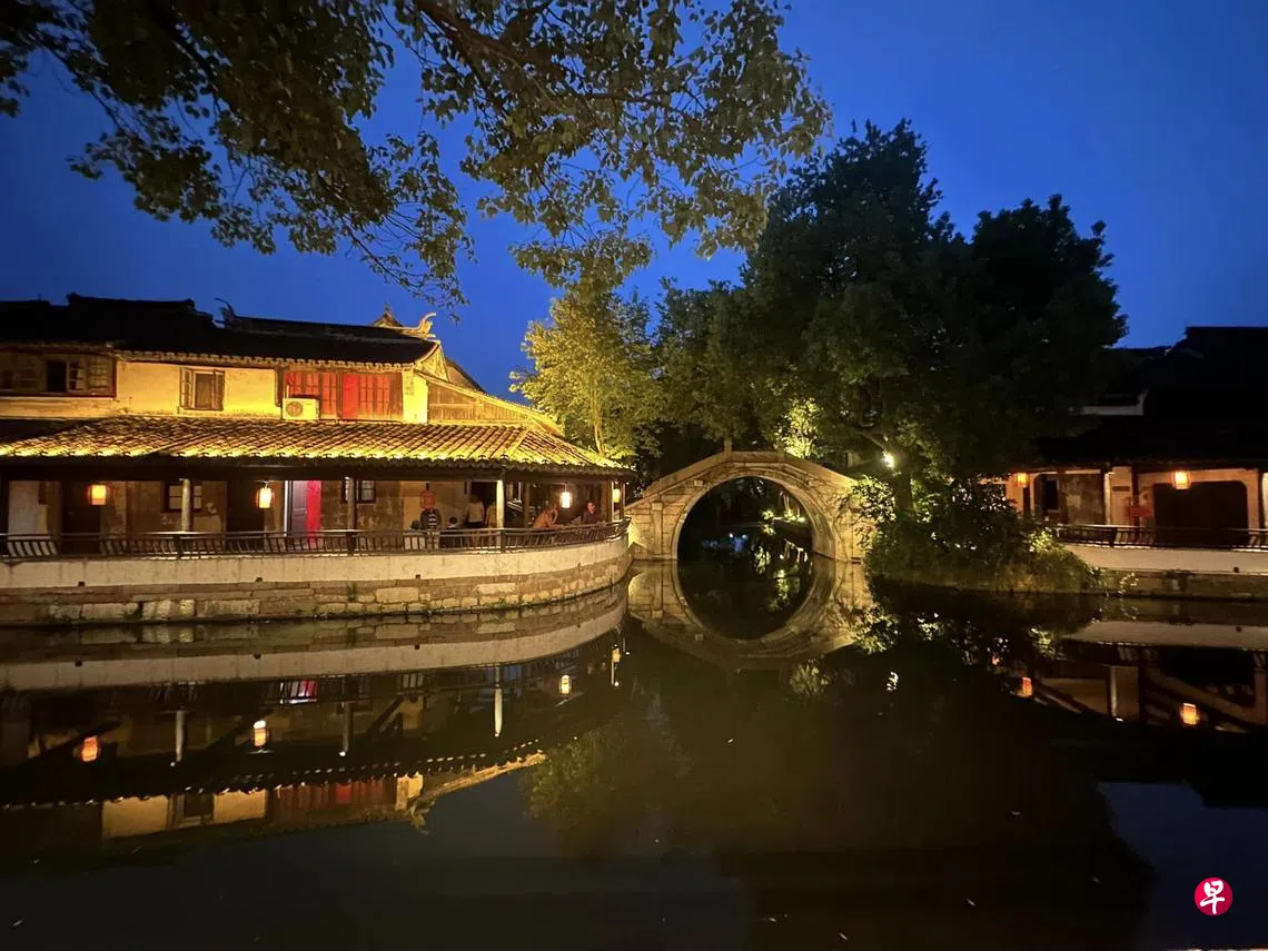下榻的“水岸寒舍”就在黎里古镇倚水廊棚旁,由老宅整修而成的精品酒店。一进门,外面的日光挡住了,一进进的小弄深邃幽静,灯笼照明。在三进的“梨花里”推门而入,庭院大花缸,斑驳的墙面,古宅气息扑鼻。二楼窗外,鸟儿飞过檐瓦白墙。