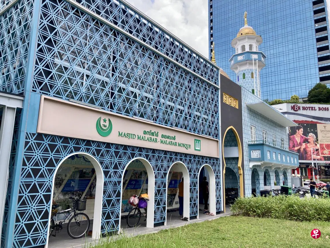 在得奖的三座宗教场所中,最引起我注意的是位于维多利亚街和惹兰苏丹交界处的马拉巴回教堂(Malabar Mosque),因为我平时有事没事都会到那一带溜达,好多年前就被回教堂的蓝色外观吸引。仔细一看,外墙的蓝其实由马赛克瓷砖构筑,既别致又显眼。