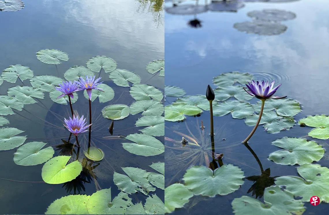 饭后,我们到附近的裕廊中央公园散步。穿梭组屋、地铁工程的路上,一轮圆月相伴。天色暗下来的公园比白天更诗意,树影幢幢,月亮乌云玩躲藏游戏。白天花开得清丽的白睡莲睏了闭目,莲池对面的地铁工程仍然轰隆进行着。这是第一次看到并记住了睡莲睡觉的模样——亭亭玉立于沼泽叶间,月色下愈发神秘深幽。