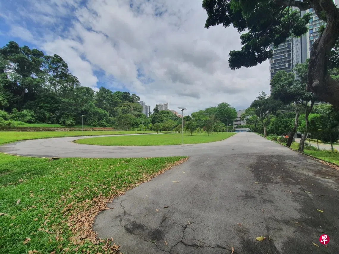 这条103号巴士每天风雨无阻川行的车道,如今已不复当年景象。从回教堂开始经过母校的那段原路,车子已经无法通行,整片校园地区被组屋取而代之。踩在组屋底层绿树成荫的土地上,眼前这位置就是同学们应该都记得的那家校门外的小茶室“龙门客栈”。能确定这是旧址,是因为对面的学校跑道和草场依然静躺在原地容颜不变,那是唯一还保留下来的学校遗区。