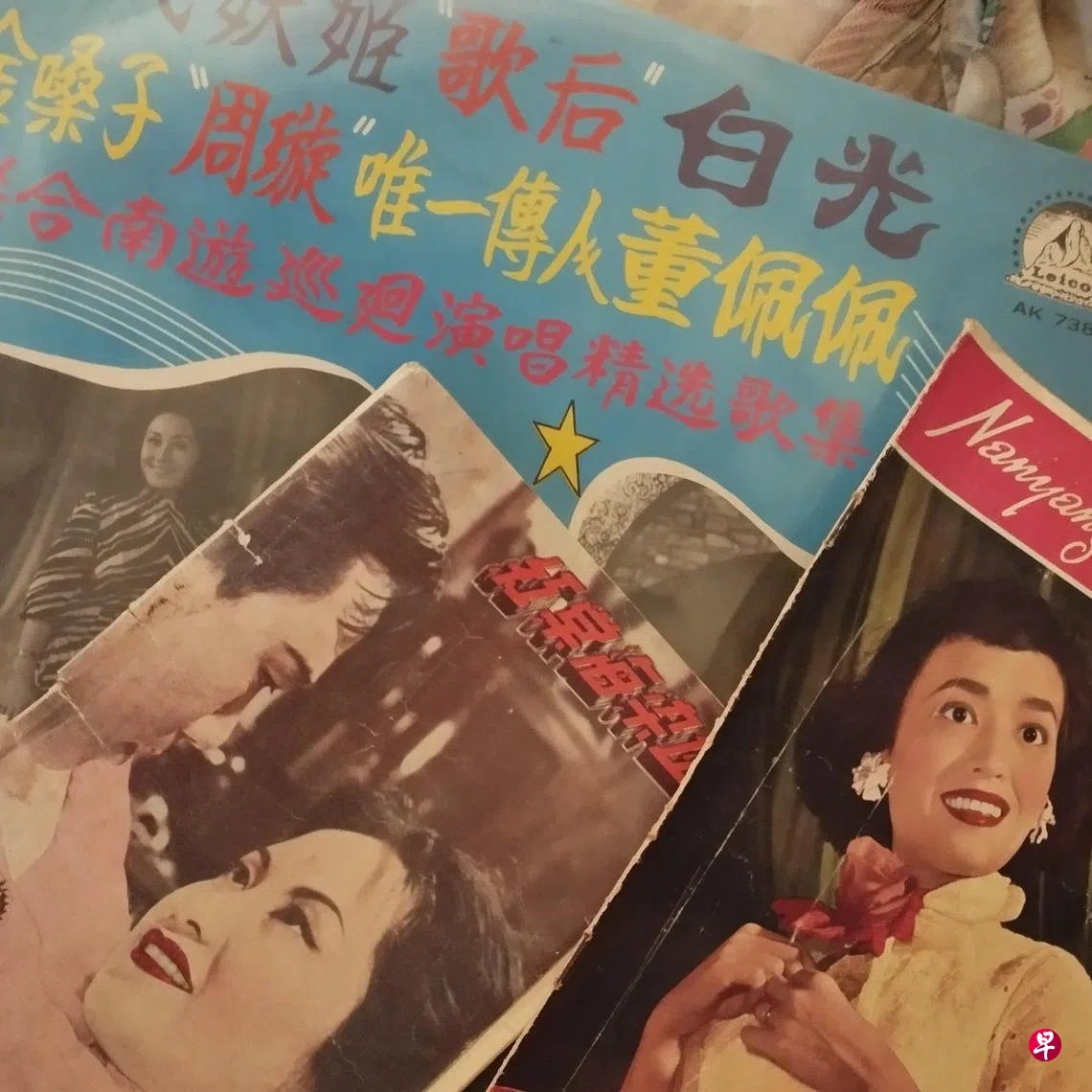 小时候一直听阿姨长辈说,金华戏院看表演,是听白光和董佩佩唱歌——怀疑是否听错,金华靠近巴刹,即如今突然吹起怀旧风的半山芭。对过是偌大的菜市,戏院附近是老店铺,卖碗碟风炉白铁桶,五脚基摆得满满皆是。市井之地,两个时代曲歌后,挨近迟暮之年,在此出现,简直是寒碜和伤感的梦幻。或者年月久远,大概记忆也混淆了,那时七十年代初,流行姚苏蓉汤兰花,即便董佩佩是小周璇,也已经晚了三十年——周璇的歌几乎是永恒之歌:送君送到百花州,长夜孤眠在画楼,梧桐叶落秋已深,冷月清光无限愁……近年来,找到姚莉的《送君》,一首未曾面市的《送君》,银嗓子的嗓子还是接近金嗓子,说是周璇的另外一个版本,也可能相信。董佩佩拍过《金嗓子》,一部影射性的电影,似乎是周璇过世后的副产品。董佩佩不美,大眼睛好比受到惊吓,而睁得老大的,笑意太浓,好像合不拢嘴。一百零一部的作品,在画报封底一直刊登广告,多年后总发现这个蹊跷,封面人物以董佩佩为主的,也不少。依傍金主,恐怕也属于幸运,当年的确留下传唱很久的歌曲——虽然拾捡周璇的遗风,董佩佩嗓子甜腻,娇媚的装饰音更多。