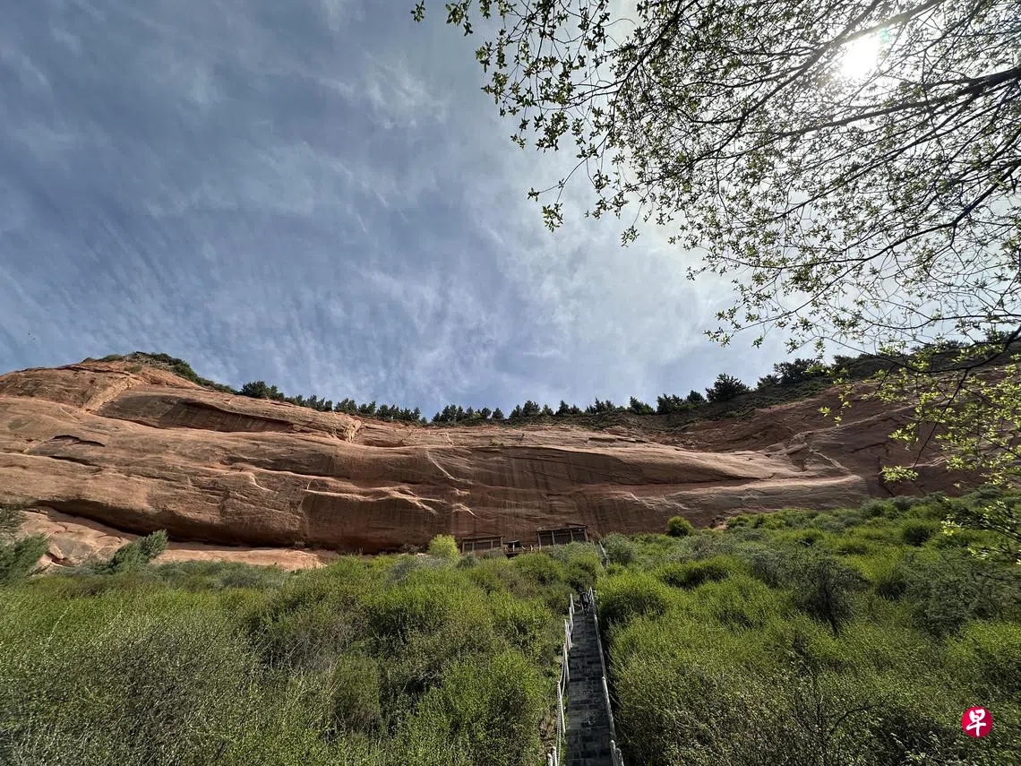 我们先到马蹄寺石窟群的千佛寺,不少燕子飞过石窟,寺内有老僧守庙。前往药师殿的洞口特窄,得手脚并爬就没上去。寺内扩音器传播的南无阿弥陀佛乐声有画蛇添足之嫌。