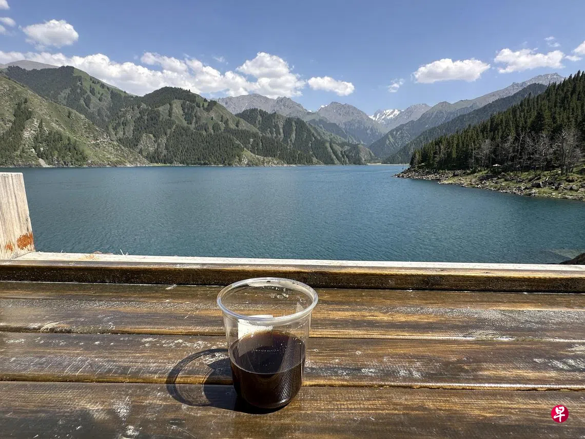 乌鲁木齐人是有福的,周末日就可上山看水去也。现是夏季,天山天池是上好的消暑之地。无怪乎,天池入口处万头攒动,从这里乘船去西王母祖庙(或娘娘庙),或者乘坐索道上马牙山,从高处俯瞰池水。我们都没去,时间不多,不如沿着这一片湖水徒步,看水,看山。