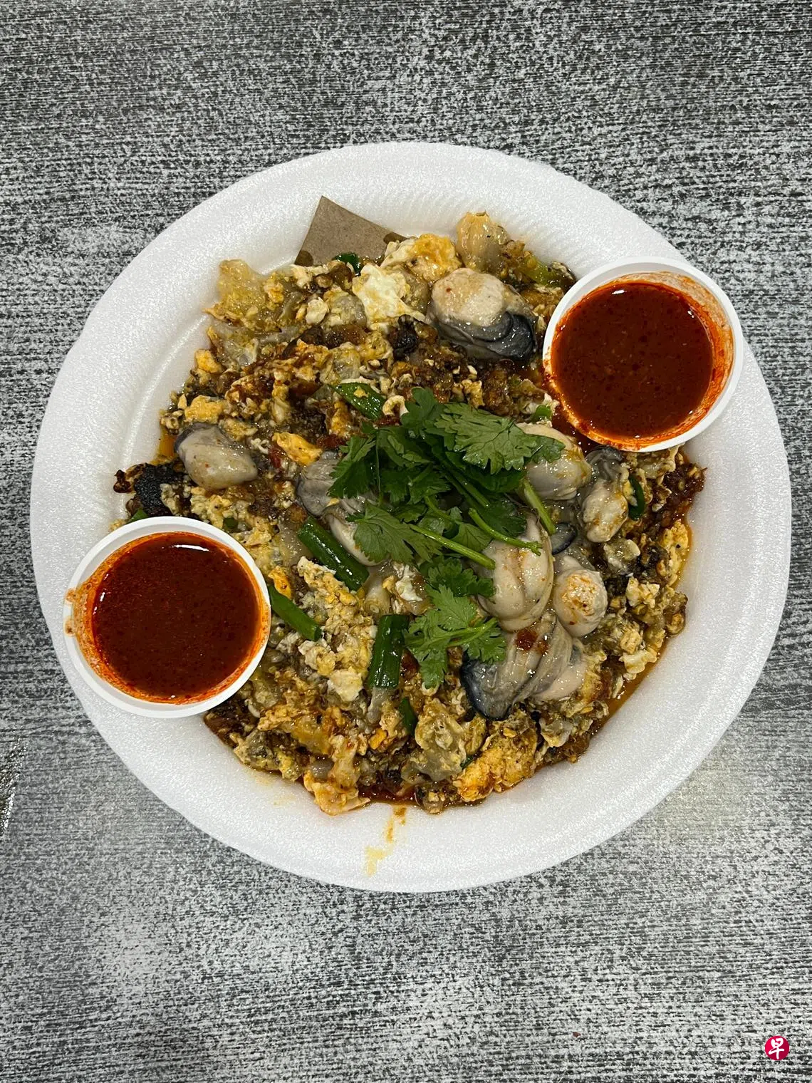 蚝煎是源自福建和潮汕地区的美食,随着移民传到台湾和新马各地。在潮汕吃过蚝烙,卖相似煎蛋,本地一些潮州老字号餐馆出品的,也颇有此风味。本地小贩摊上的版本,则是炒得零零散散,盛起来层层叠叠,油光满面。过去我并不喜欢蚝煎,木薯粉放得太多,软塌塌的,还会吃到像浆糊一样的东西,更有饱足感。后来摊贩们慢慢改良了做法,减少木薯粉比例,甚至采用进口的肥美生蚝,才让我渐渐接受它。不是所有古早都值得赞扬,这家蚝煎摊就采用了韩国生蚝,炒得零零散散的,用汤匙吃更合适,它比一般的蚝煎炒得湿,又同时烙出脆感和焦香。