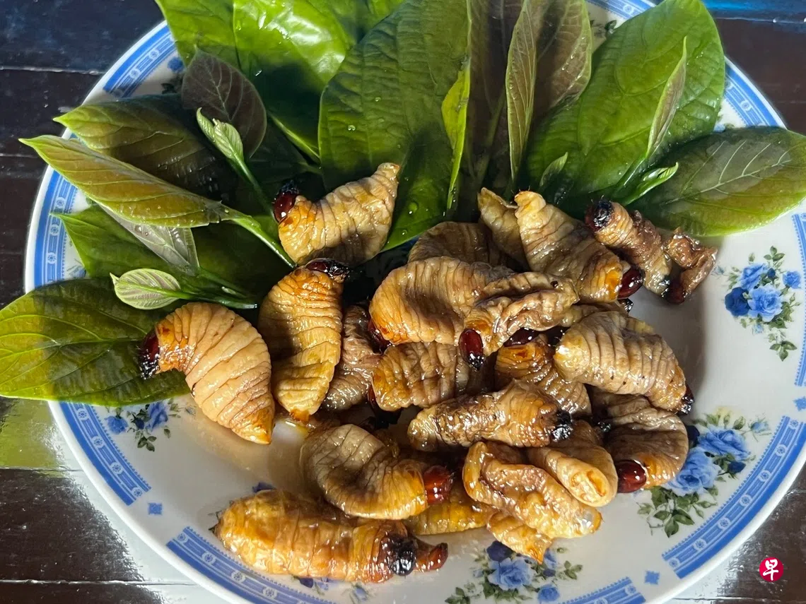 我在砂拉越首府古晋的菜市场里见过硕莪虫,它们肥白而柔软,蠕动着身躯,像月中漫步的节奏,是一种介于可怖与可爱的存在。现代交通与冷链技术的发达,把食客与食材的距离拉得越来越远。餐盘上的一道菜,往往遮蔽了它最原初的样貌与来源。如果我们能亲临食物的源头,对眼前的美食会不会多一份崇敬的体会?