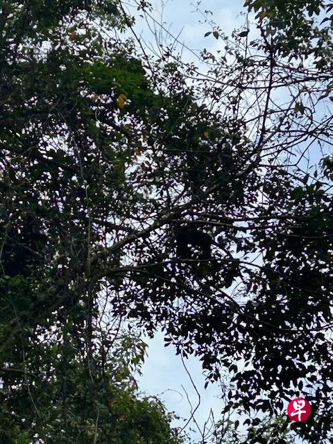 那是莱佛士叶猴(Raffles’ banded langur)的身影。年初周末到汤申路上段步行时,经两个站在路旁拿着望远镜和“大炮“摄像机对着大树张望的大自然达人指点,有幸目睹了一家子的莱佛士叶猴,在树上进食歇息的野趣。说目睹,其实更准确的说法应该是抬头望着前方大树,随树叶的晃动和沙沙响声,努力寻找叶猴的踪影。在自然栖息地看野生动物需要好眼力、观察力和耐性。遇见叶猴那天,我没有随身携带任何助视工具,只能靠手机捕捉到一些模糊的画面。
