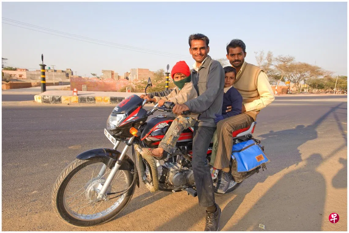 在孟加拉吉大港的小镇,人力三轮车在充满尘土的路中穿梭于车辆中。