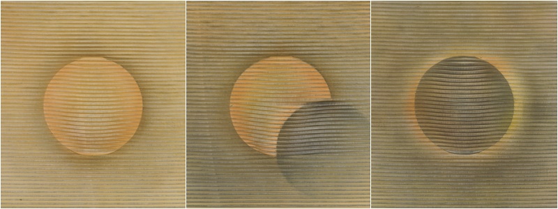 杜瑛代表作《日蚀》(1983)三连画用亚克力喷染在布料上,通过折叠等技术创造出“浮雕”感。1990年代描绘柔佛萤火虫的作品结合水墨、水彩与胶彩,表达更为自由。