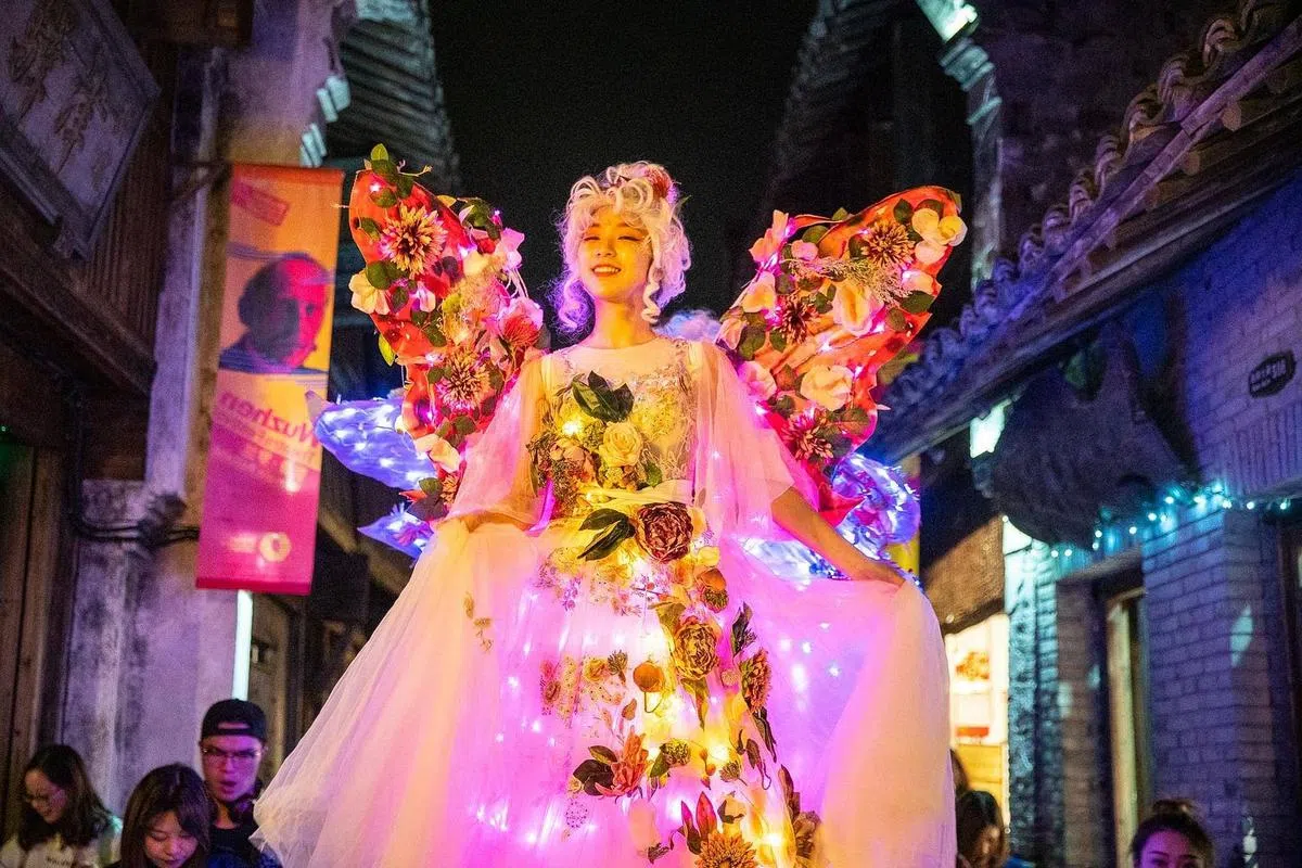 “古镇嘉年华”单元则以乌镇西栅独有的江南古镇自然空间为舞台,探寻戏剧发生的无限可能。秉持多元开放交流融合的理念,每年上百组古镇嘉年华表演团体,在乌镇的木屋、石桥、巷陌、摇橹船等场景中,打破与观众的观演关系,上演了上千场艺术表演。
