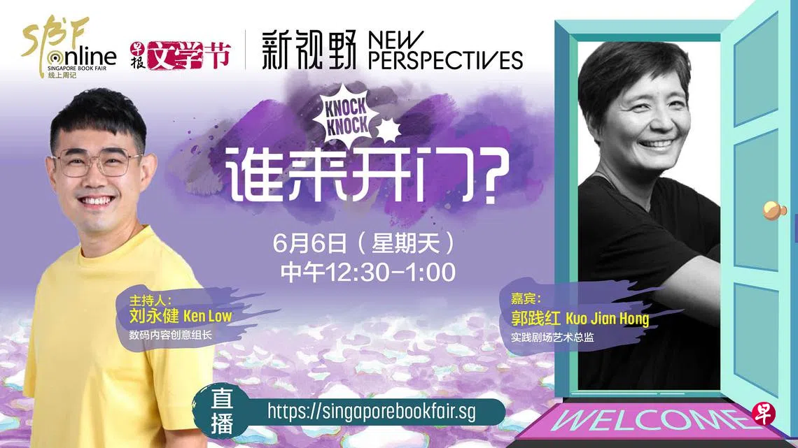 6月6日谁来开门—— 实践剧场艺术总监郭践红身为实践剧场艺术总监、获奖剧场导演、灯光与舞台设计与独立制片人,郭践红是一位全方位的艺术创作者。她的艺术生涯长达30年之久,是新加坡艺术界发展的主要贡献者之一。6月6日,一起窥探这位艺术创作者,这些年来的书房 / 工作室。 郭践红新加坡书展特别企划上一篇阿果:《不变的,一样的》新书发布会下一篇《新新头家:致创业路上的你》新书分享会