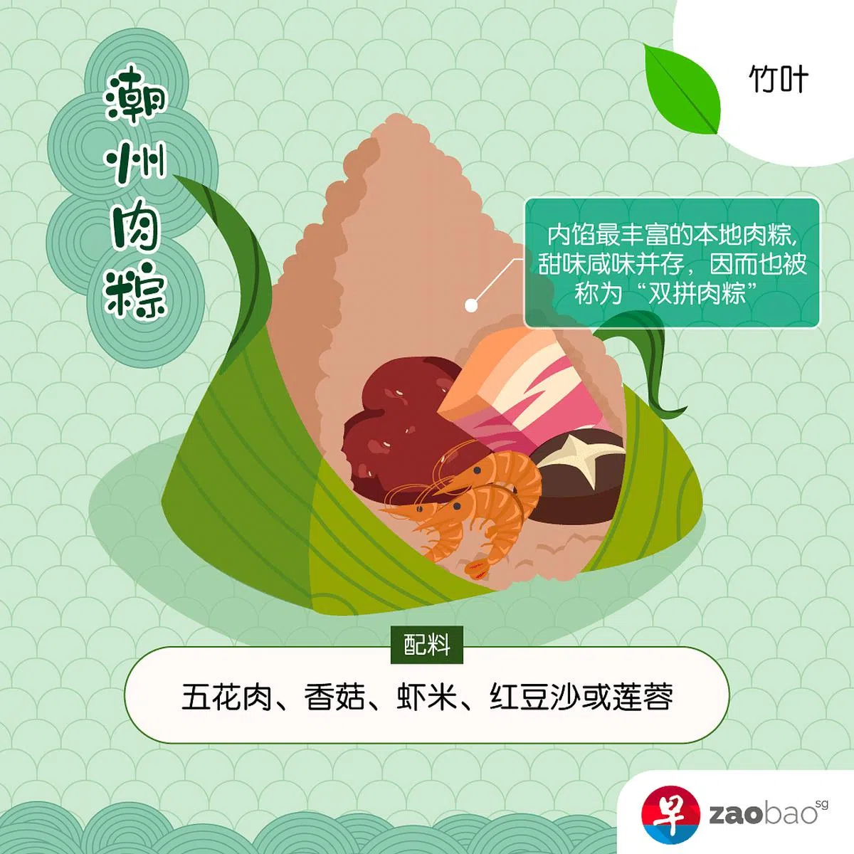 包粽子和划龙舟等端午节风俗在新加坡流传至今。不少国人从小到大都知道端午节吃肉粽(福建话叫“bak zhang”),但你是否知道原来“bak zhang”也分籍贯?zaobao.sg以图鉴的形式为你整理出本地市面上的七类粽子,带你了解它们的特色。