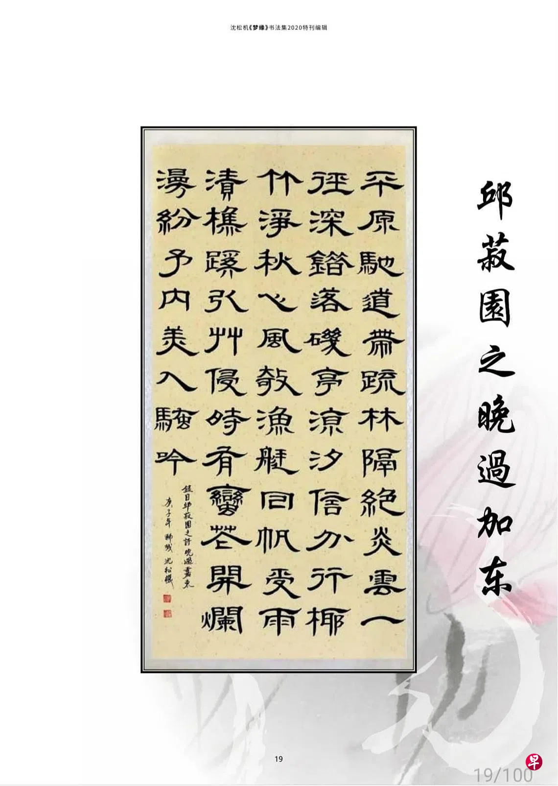 其作参与汉石书艺学会主办的“汉石书艺”,狮城书法篆刻会办的“狮城墨韵”展览及多个国外书法大展。个展“梦缘”是沈松机第一个书法个展,是他学习书法的总结,也是另一个起点。