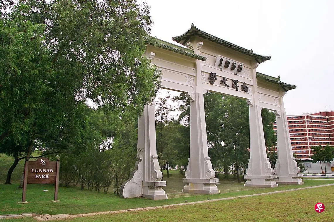 我们小区附近有个叫做“云南园”的住宅区,住宅区占地很大,区内所有的路名皆与南大校园里的路名对应,有南洋道、南洋湾、南洋谷、南洋径等熟悉的路名。就在这云南园住宅区后头,南洋大学的巨型旧牌坊就在住宅区边缘的小公园里头。