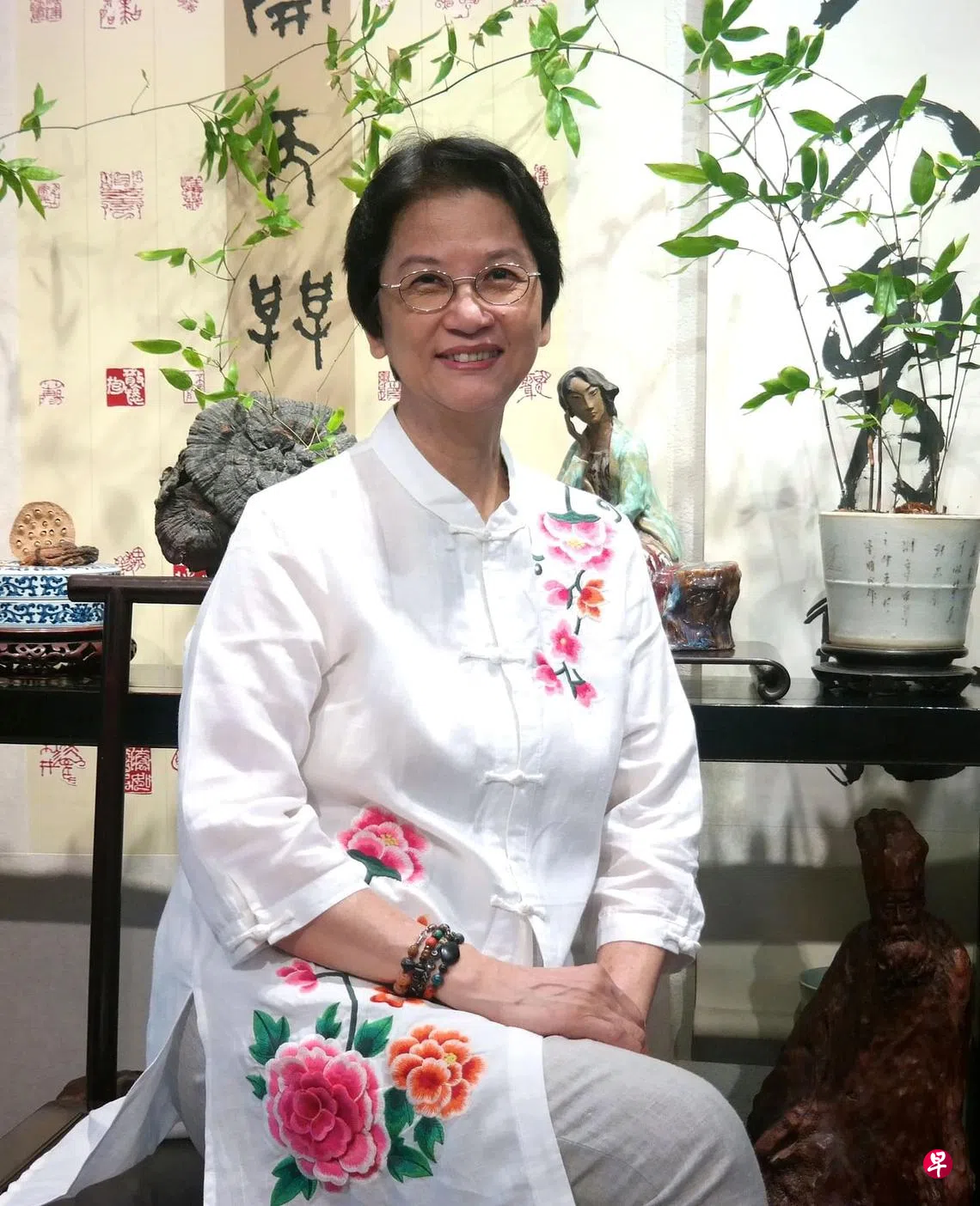 本地画家傅美珠(70岁)五年前本想办展,展册已筹备好,料不到伴侣、书画篆刻家陈建坡出事了,于2019年病逝,加上冠病疫情耽搁,至今才迎来人生中第一个绘画珠饰展。