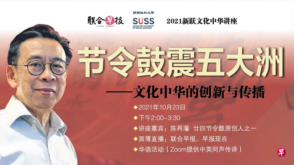 今年新跃文化中华讲座邀请马来西亚文化创意人陈再藩,以廿四节令鼓为例,探讨华人文化的创新与传播。
