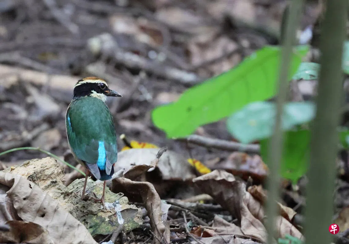 电视新闻中,本地观鸟者分享珍贵照片 :美丽的“八色鸟”两年后再度经过岛国。这种美丽的候鸟因北半球冬季将至而季节性地南飞,并非每年都会经过新加坡,若是停留,也只是栖息几天就续程飞往目的地。今年就只看到珍贵的一只八色鸟。看过新闻中的八色鸟照片后,第二天醒来,想着想着,有泪,有诗。