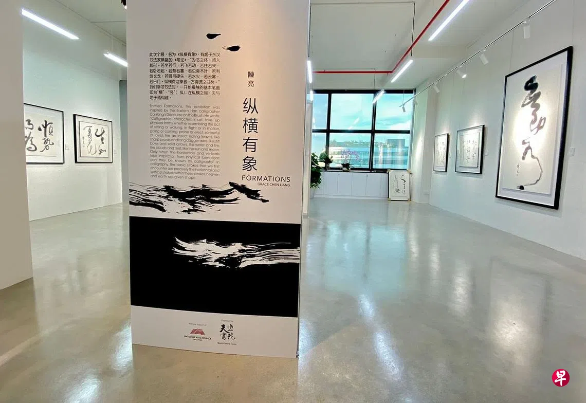 陈亮相隔四年的第二次书法个展“纵横有象”就在装修后的工作室举行,展出约30件作品,配合展览的书法集收录43幅作品。个展原定去年举行,陈亮预订了展厅,不想冠病疫情让实体展览被迫按下暂停键。这令她想起德国有一句谚语:“树木结疤的地方,也是树干最坚硬的地方”,她说:“当最艰难的时侯,我们踉跄前行,这也将成为我们人生最深刻的铭记吧。”