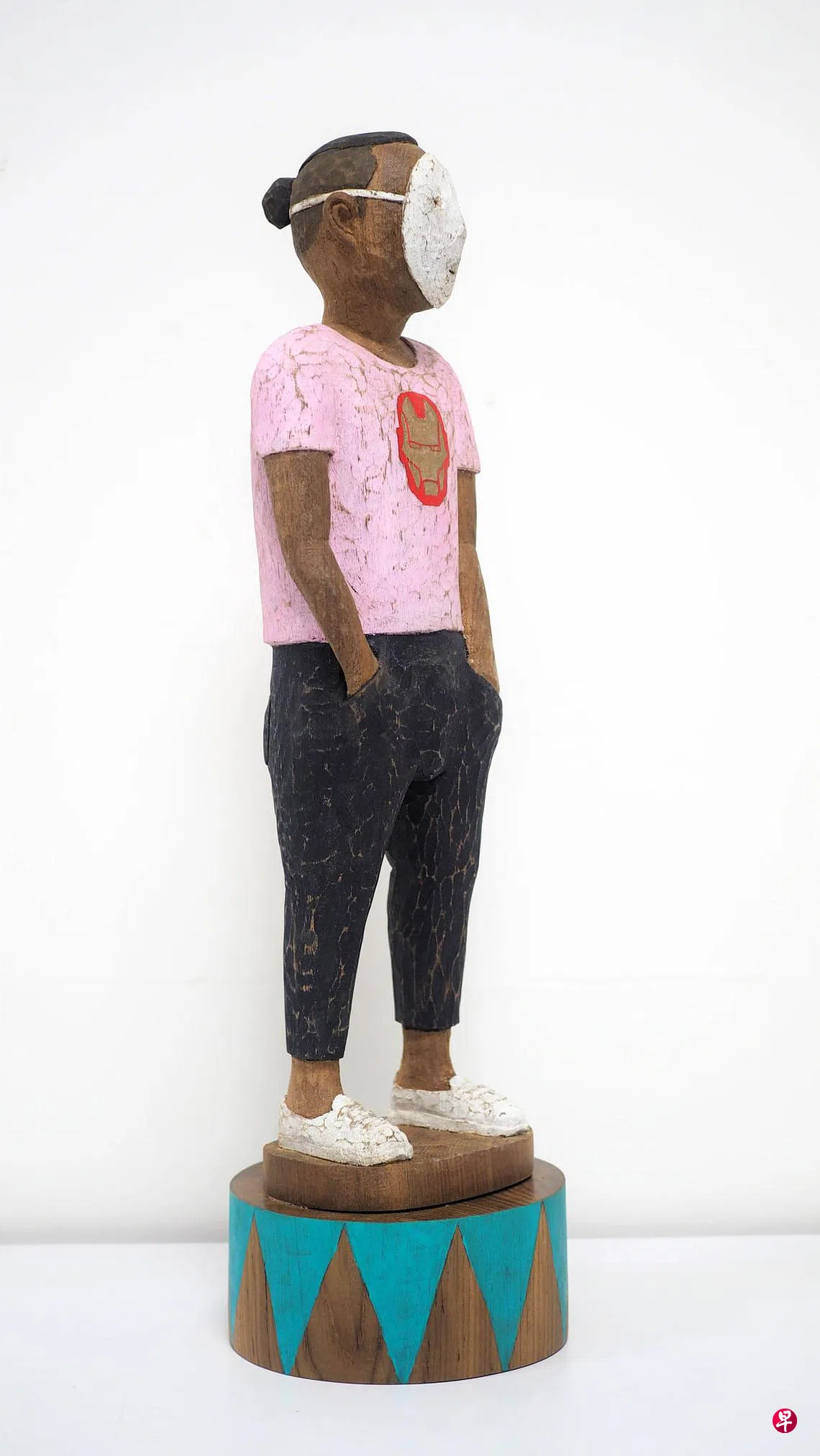 有一天,Art Porters画廊负责人探访我国雕塑家林序毅(60岁)工作室,看到他木刻一个戴粉红口罩的女孩雕像《2020年五月的某一天》,建议他做一系列戴口罩的雕像办展。