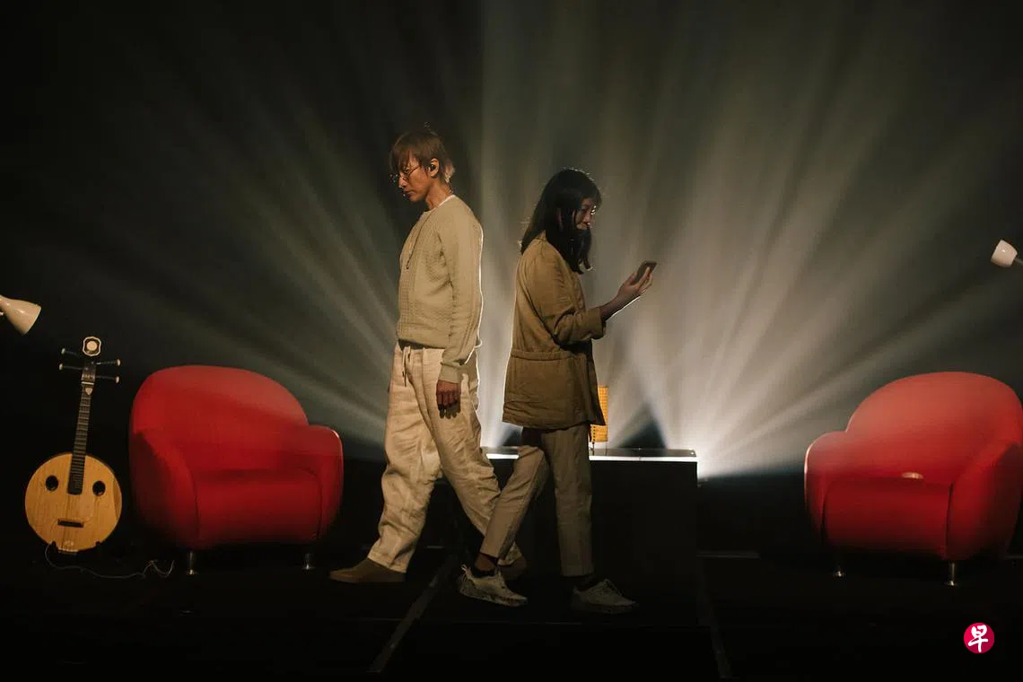 推己及人,在同年收到滨海艺术中心的创作委约时,朱伟康决定把心理健康的议题搬上舞台,呼吁更多人关心自己和身边的人。新加坡华乐团阮副首席罗彩霞是朱伟康多年的同学和好友,他也知道她的志趣不仅仅是弹阮,也喜欢唱歌和跳舞,于是两人从日常生活出发,共同构思出这部具有实验性的音乐剧场作品。