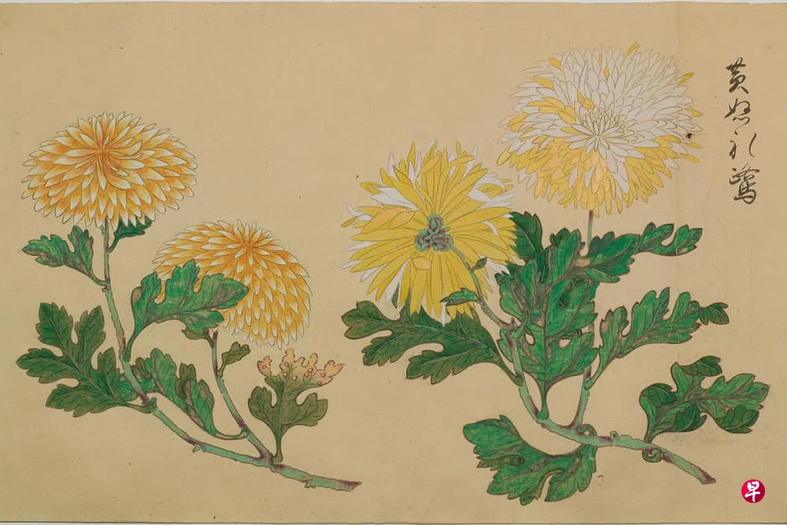 这些展品包括日本出版的关于锦叶草木的最佳作品,日本最早的园艺插图书,以及记录了50多种获奖菊花品种的百菊手卷。这些书籍大多因花卉贸易产生,在没有相机的年代,顾客可以根据花册挑选自己喜爱的品种。展出的绘画和版画是东亚人对花卉热爱的宝贵档案,也是种植、挑选、展出和交易植物的永久记录。三四百年过去了,泛黄的纸张上,这些花草还栩栩如生,这些书册也构成了现代日本植物学的开端。
