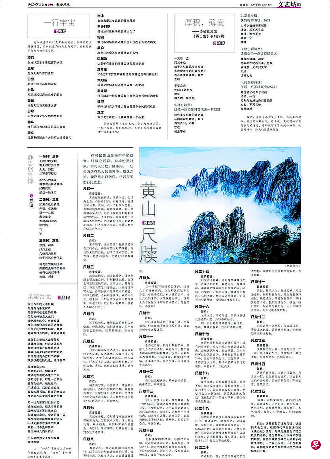 《黄山尺牍》是一篇难得的佳作。后记说是根据钱谦益的《黄山记》改写,钱谦益是个颇受争议的人物。又说,为了纪念一位醉心于研究山水诗和意境的老师而作。为什么选择以“尺牍”呈现?——这些诠释时都是必须参照的外在因素。文中夫妻关系是虚构的,一个在山水间,一个在闺阁内。往来尺牍藏有诸多隔阂:一、各说各话,几无交集。二、吾君沉浸于黄山之美喻示一种精神之向往,吾妻描述自己的窘迫和病困则喻示现实里的状况。三、似有交集时最堪玩味。尺牍三吾君说:“你可知黄山是天空中的都会,轩辕之殿寝。众神纷至往来,神司入口处。拂手间,一切会消失在凡人的眼界中。旅途之始,我已经心存敬怀,恍若在天都石门之上。”尺牍18吾妻说:“ 你总是在峻岭上游移,期望归去山水飘渺间,是否偶会迷失自我?虽然我们的书信往来不断,但你依旧离我甚远。”作者把密码设置于“黄山”和“自我”之间。蔡素君借古喻今,构思奇特。她不贬斥,不嘲谑。“自我”不应解读为纯属个体的行为,“黄山”亦不宜看作神话一般遥远不可企及。笔者以为《黄山尺牍》之旨意可以拿来比拟参照,进而思考正在思考的新华文学的处境以及它将孕育的特质。