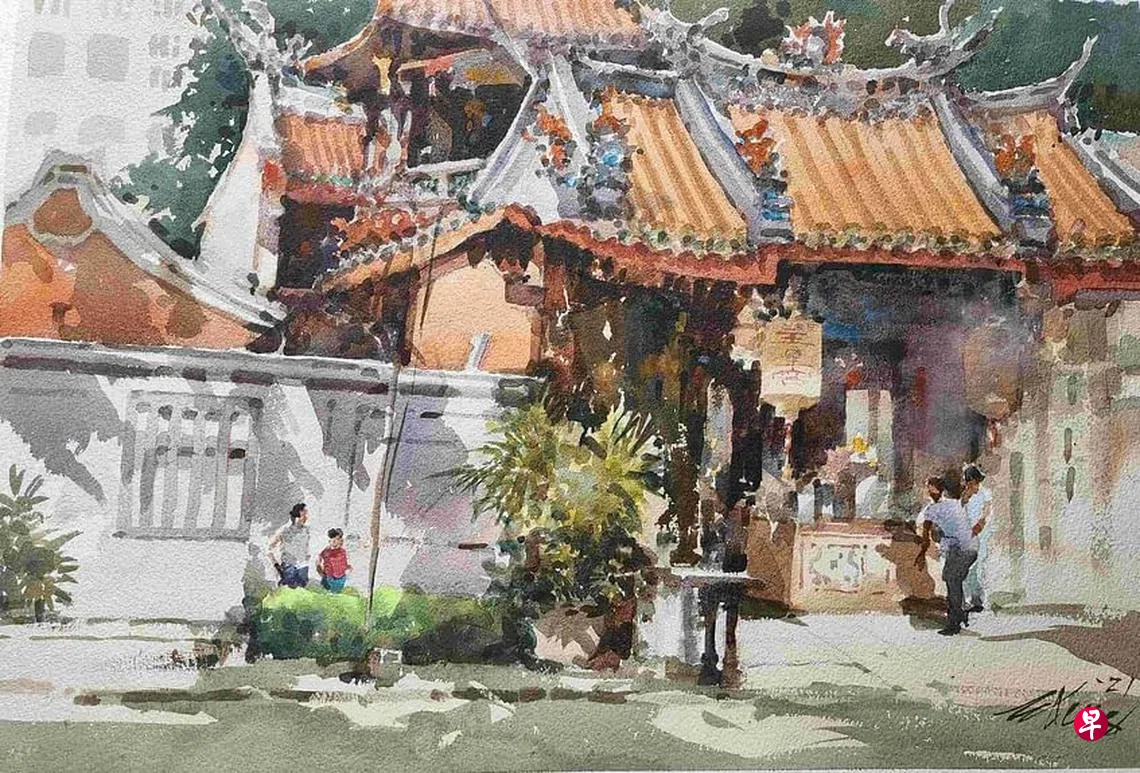 王金成自1960年代,与新加坡水彩开山鼻祖林清河领导的民间组织“星期天小组”一起到户外写生后,户外绘画成为他艺术实践中不可或缺的一部分。其水彩画以抒情表现力闻名,笔触流畅,对细节极其关注,作品曾在世界各地展出。王金成说过,“在现场绘画时,景物会随着时间的推移,受到光影以及环境变化的影响。我与现场的这些因素互动,真正体验到场景的气氛,这对于创作一幅生动而引人入胜的画作至关重要。”