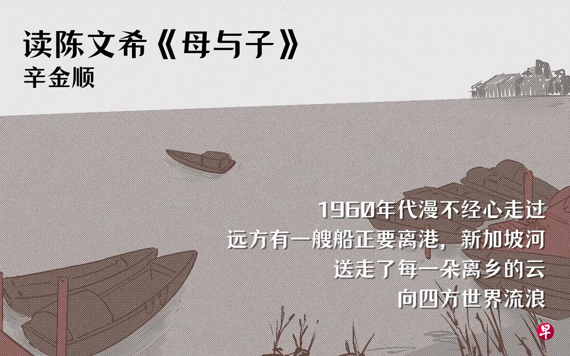 那低垂的眼神,有光在油彩上发亮 时间开花,语言 安静,窗口似乎有鸽子叫响了钟声 1960年代漫不经心走过 远方有一艘船正要离港,新加坡河 送走了每一朵离乡的云 向四方世界流浪 爱却隐藏在八月的空气里,岁日明暗 涂彩了生活的悲欢 那些搁在昨日屋簷下的风雨,是否 早已离开? 生命总在一些生命的成长中老去,回忆 不断被苦难抹掉 拥抱云烟,拥抱光影,梦却一朵又一朵 向身后枯萎,凝眸 深处,孩子正从一则则童话里被拉拔长大 时代轻轻的晃荡,日子一路走过 有歌,正在 前方,等待与一枚旭阳熀熀的升起……