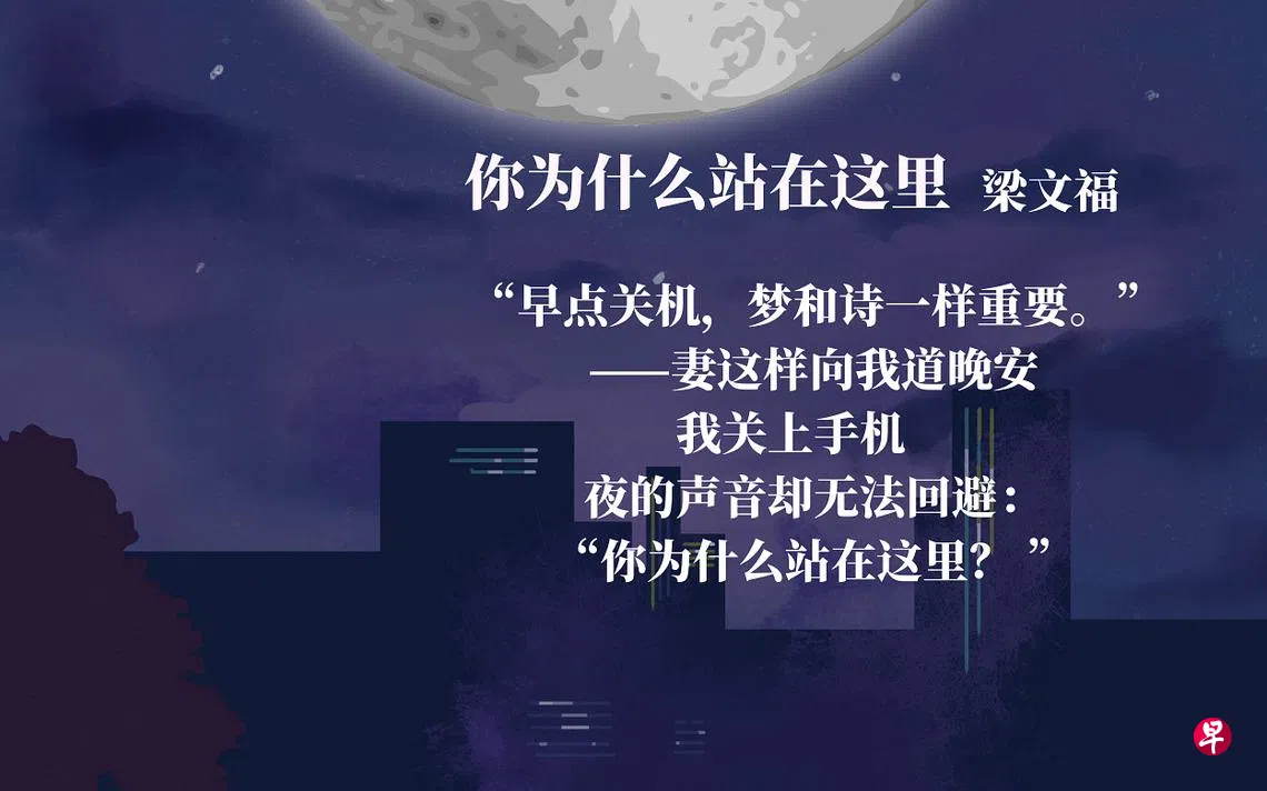 “早点关机,梦和诗一样重要。” ——妻这样向我道晚安 我关上手机 夜的声音却无法回避: “你为什么站在这里? ”