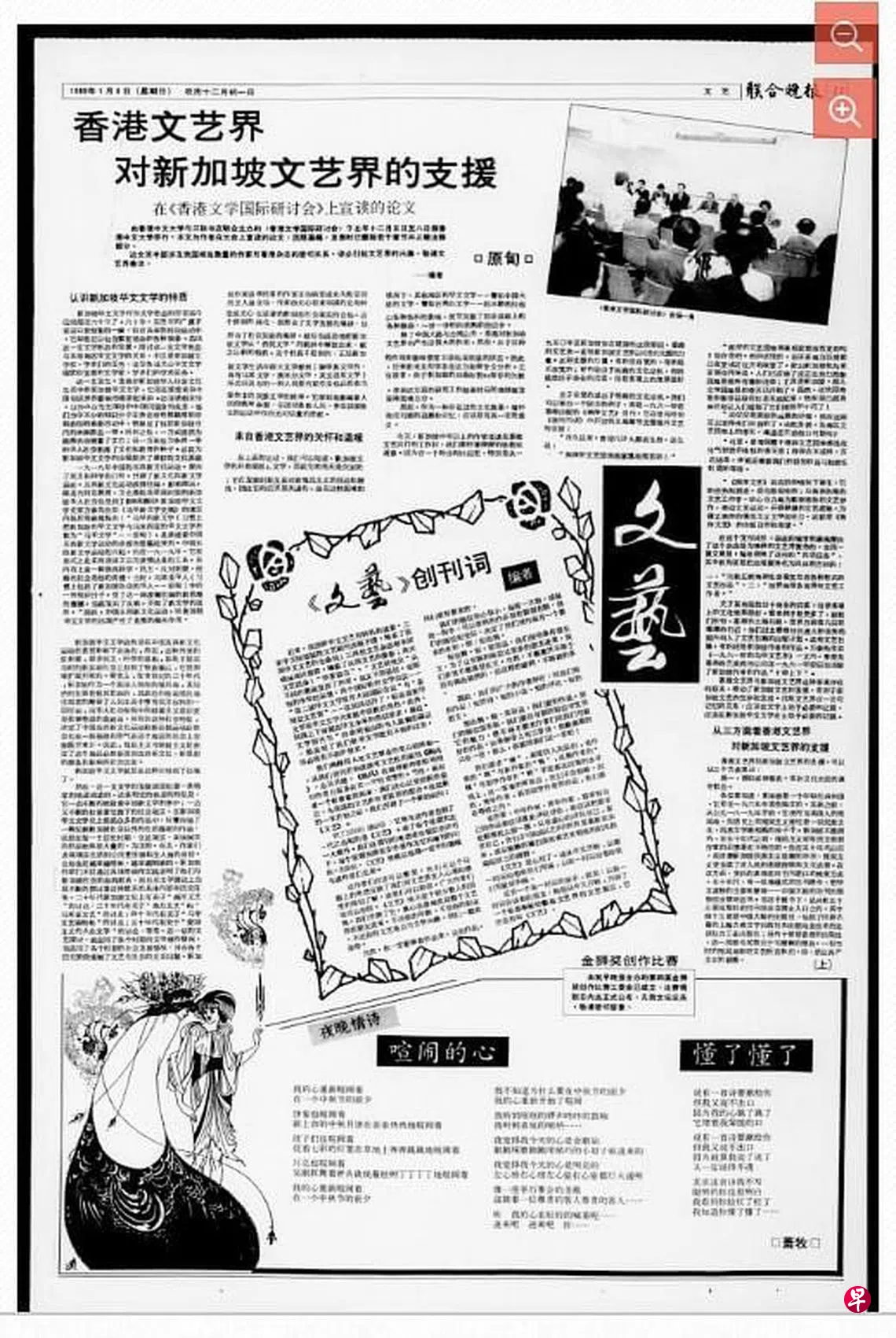 《文艺》在1989年1月8日创刊,首任编辑有说是原甸,打电话跟他求证,他说完全想不起这回事。第二任编辑是范北羚(1989年10月15日-1990年12月30日),第三任编辑是董农政(1991年1月13日-1993年),第四任编辑是白全成(1994年-?),第五任编辑是韩山元。
