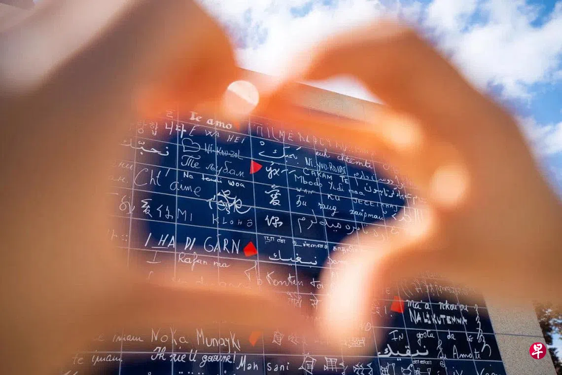 《爱墙》由612块来自法国纯手工制作的熔岩砖组成,转载当时联合国192个成员国的所有语言,墙上用311句宣言写成“我爱你”,被称为“世界上最浪漫的墙”。