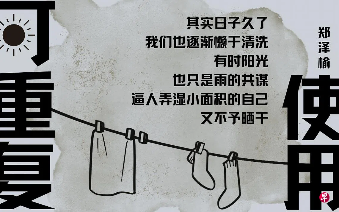 《可重复使用》 通过隐喻,把时间、日子、人、你我他,把生活某种不可自拔和周而复始的深陷,乃自麻木的状态,表述出来。