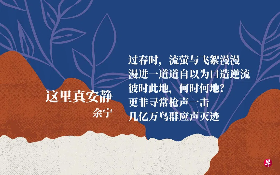 过春时,流萤与飞絮漫漫 漫进一道道自以为口造逆流 彼时此地,何时何地? 更非寻常枪声一击 几亿万鸟群应声灭迹