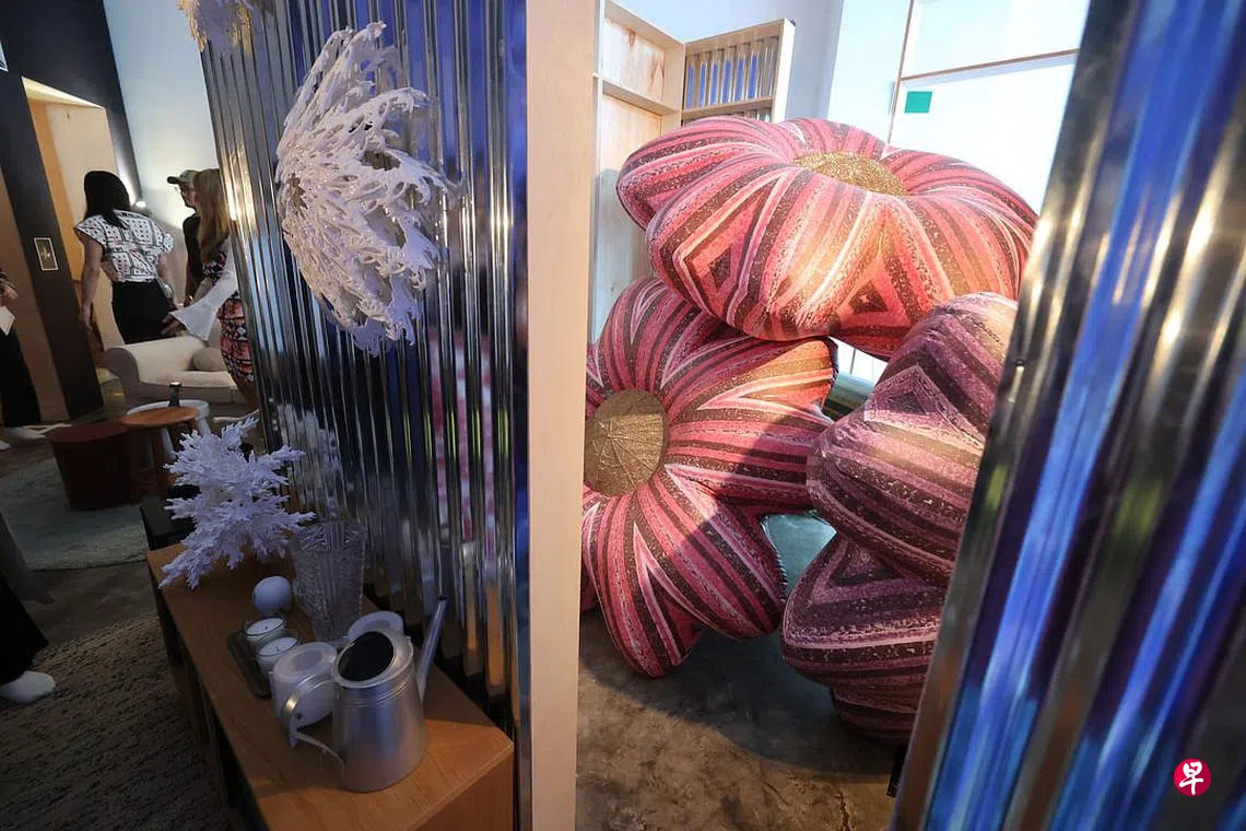 另一个空间是自2021年底起办展览的室内设计咨询公司Supper House(222 Tagore Lane #04-03 S787603)。本次艺术周,它特地将办公室改装成展览场地,与一群艺术工作者、手工匠人呈献群展“晨雾中有花”。